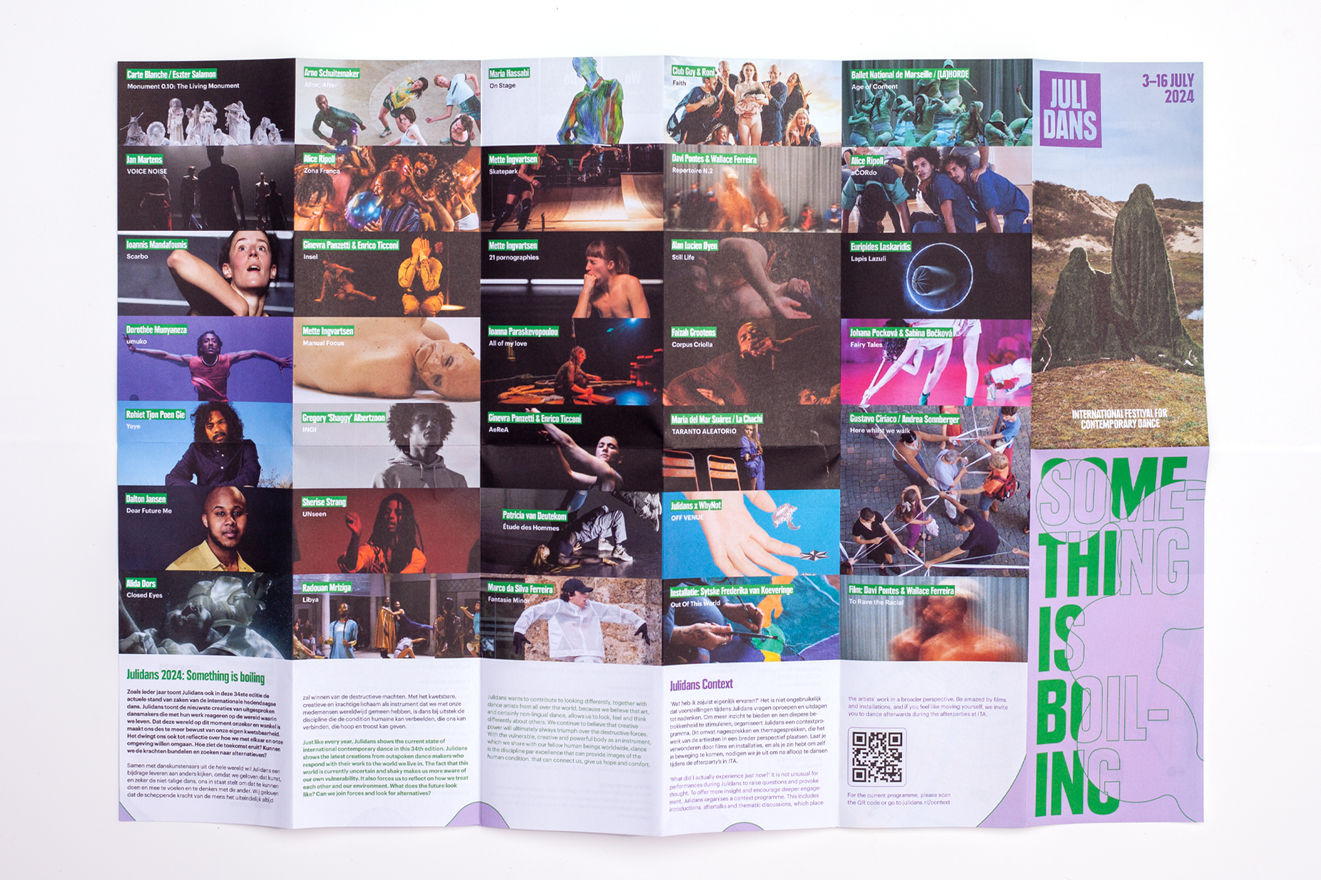 Julidans is a festival for international contemporary dance. Every summer the festival presents new talent. Together with Dolly Warhol we created the look and feel for 2024 edition.