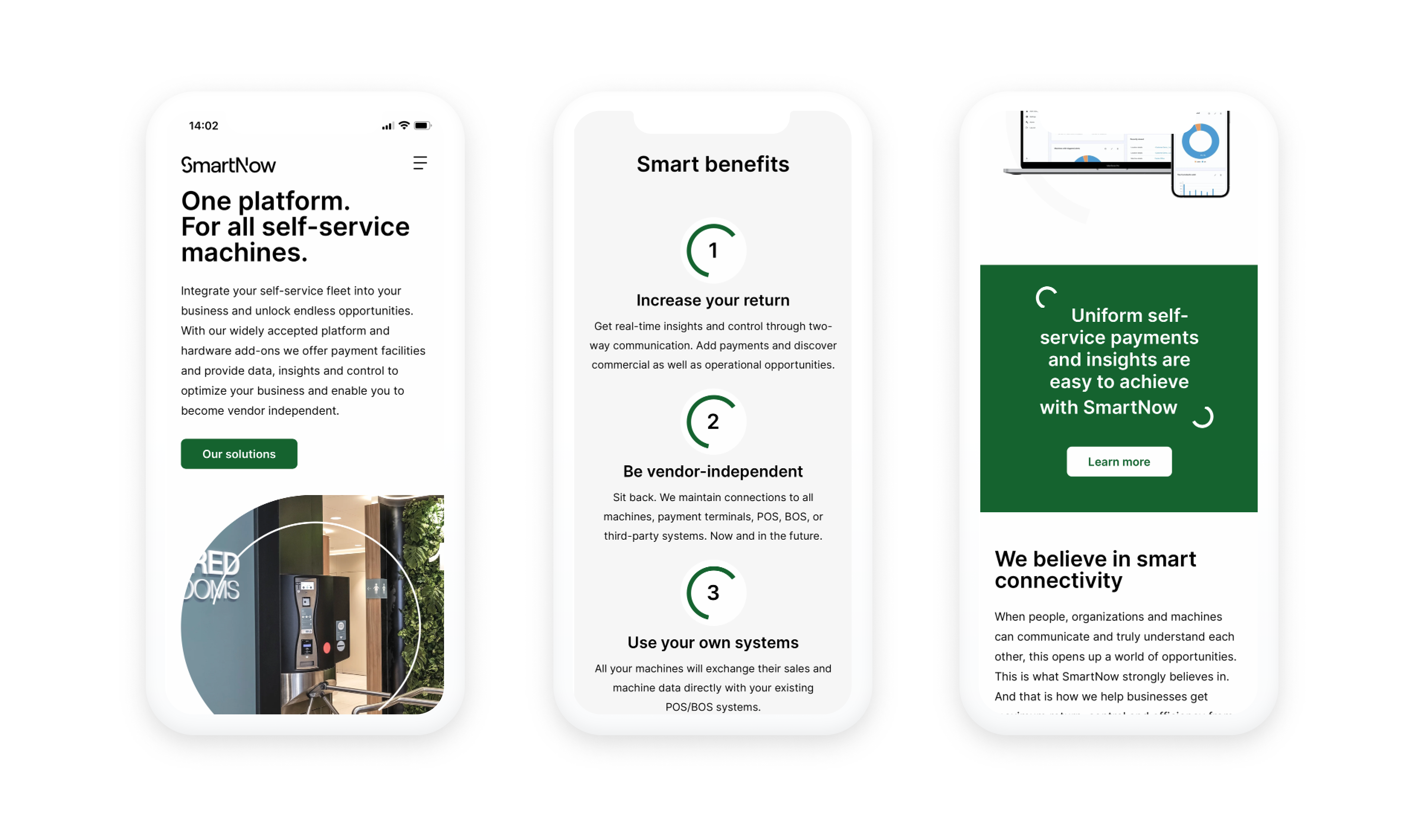 SmartNow integrates self-service machines to their software platform and offers payment facilities to optimize business. We created a smart visual identity.