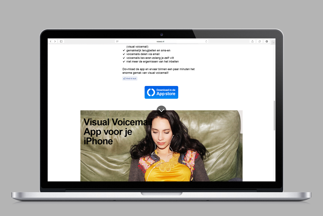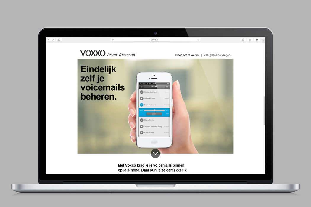 Voxxo is a free visual voicemail application for iPhone. We provided the Visual Identity, web, app design and communication.